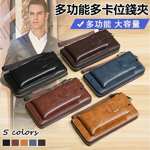 NT$3241298【買一送一】復古多功能錢包,可放手機,鑰匙,錢卡,精選頭層牛皮,耐磨耐用。