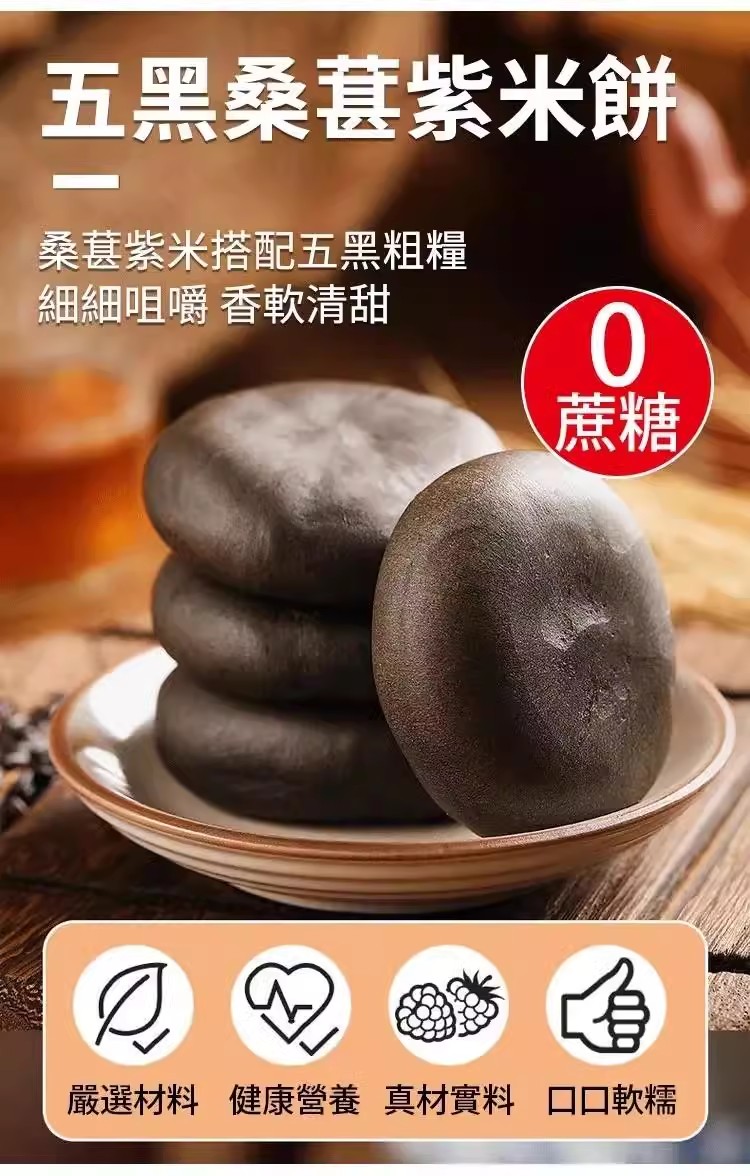五黑桑葚紫米餅,0糖0脂0卡,手工製作,軟糯Q彈,好吃不膩!富含人體日常所需多種營養素 一包堪比一頓大餐 零糖飽腹 軟糯香甜 老少皆宜